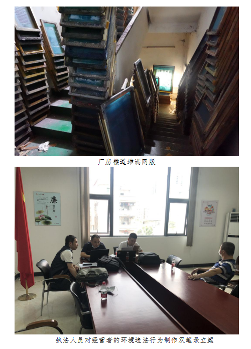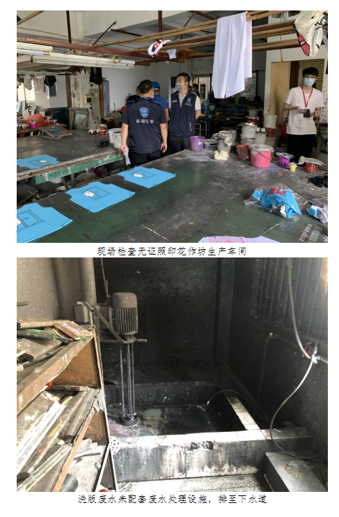 5月8日上午,聯(lián)合檢查組到鯽魚崗水庫周邊區(qū)域進(jìn)行突擊執(zhí)法檢查,本次行動共出動30人次,清查了2家無證照印花作坊及1家無證照塑膠制品作坊?,F(xiàn)場檢查時(shí),3家作坊正在生產(chǎn)。其中,2家無證照印花作坊未經(jīng)環(huán)保審批設(shè)有印花、洗版等工序和相關(guān)設(shè)備,洗版廢水未配套廢水處理設(shè)施,直排至下水道,對周邊水體造成污染,同時(shí),樓道間堆滿網(wǎng)版,存在明顯的消防隱患。執(zhí)法人員隨即在現(xiàn)場依法調(diào)查取證,并對該兩家作坊的環(huán)境違法行為進(jìn)行立案處理。另外,檢查組還發(fā)現(xiàn)一家無證照塑料制品作坊,其未經(jīng)環(huán)保審批擅設(shè)成型等工序及相關(guān)設(shè)備,成型產(chǎn)生的有機(jī)廢氣未經(jīng)處理直接排放,檢查組對上述3家企業(yè)現(xiàn)場斷水?dāng)嚯姟kS后,檢查組對廠房房東進(jìn)行了環(huán)保宣傳教育,提醒其出租需謹(jǐn)慎,應(yīng)當(dāng)履行環(huán)境保護(hù)的責(zé)任,并督促其自行落實(shí)“兩斷三清”,后續(xù)各部門將根據(jù)各自職能作進(jìn)一步處理。